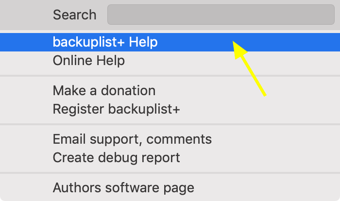 Note: I no longer have all the detailed instructions and information on backupList+ posted here. You can access all the information from backupList+ by going to Help menu > backupList+ Help. This will bring up an excellent apple help book!